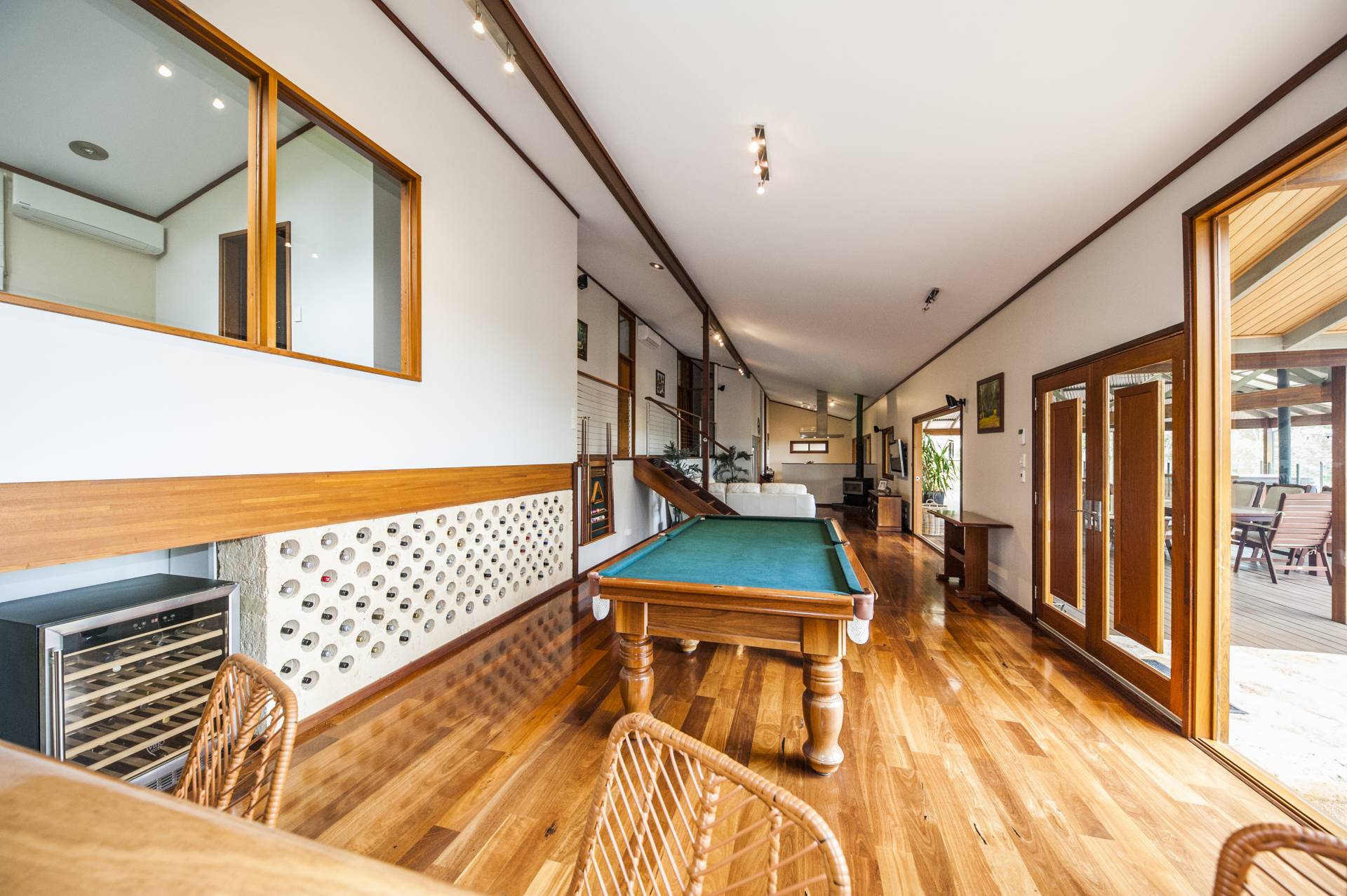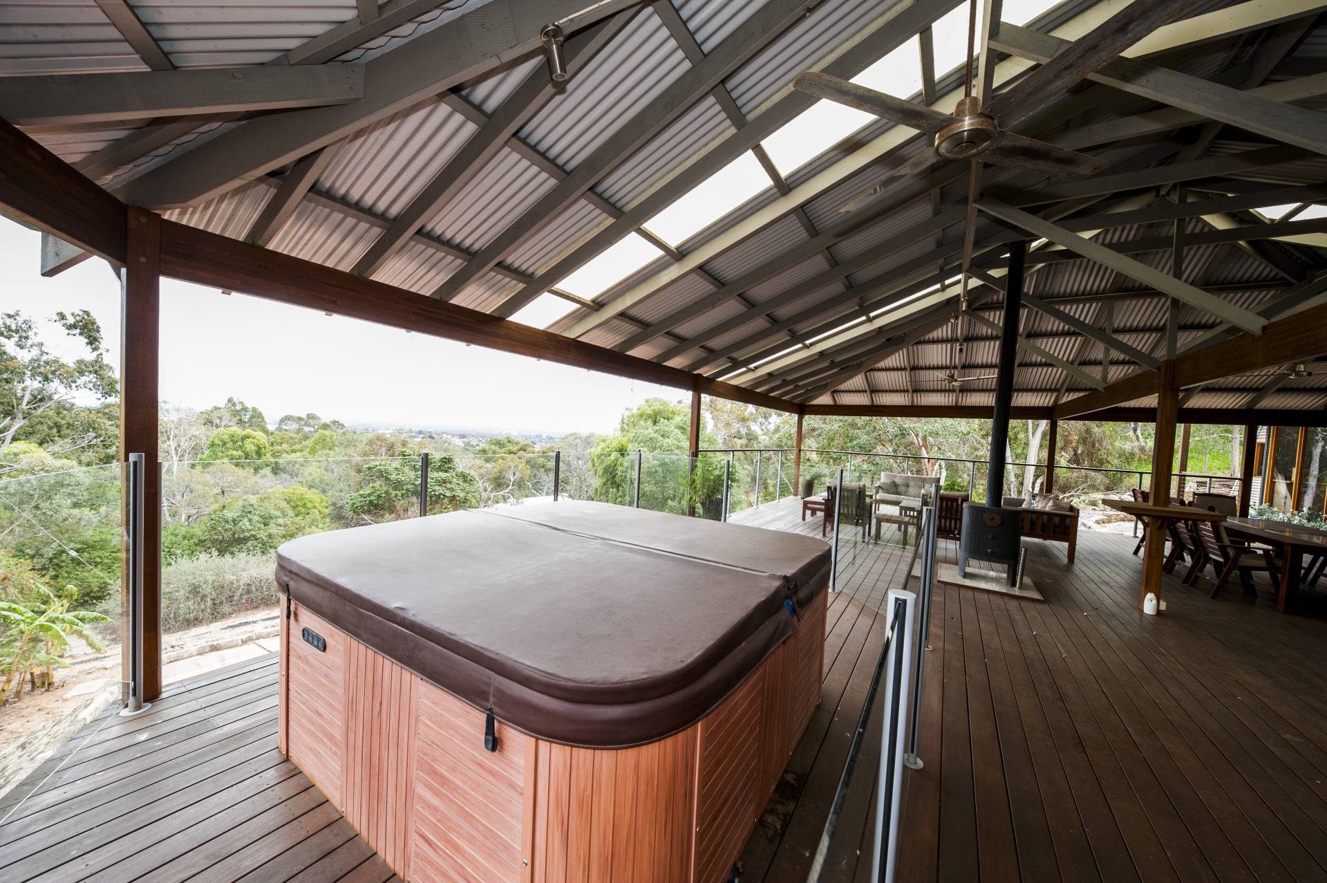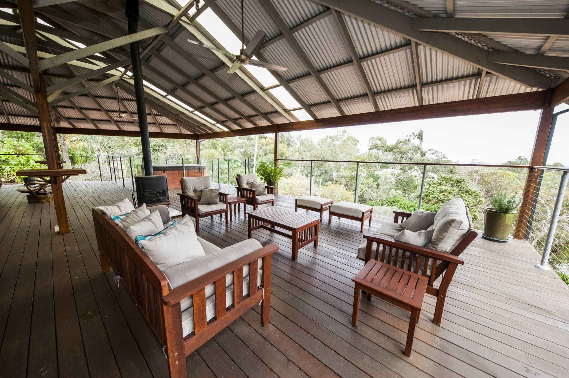 The property has a solid foundation and was designed to fit with the natural surrounds and use the landscape as part of the decor. No need to spend a lot on decoration, just enjoy the inside charm or get lost in the view through the windows or from the enormous front outdoor living space complete with Spa.