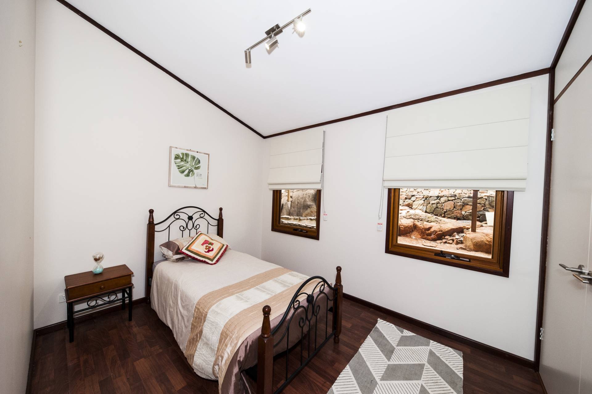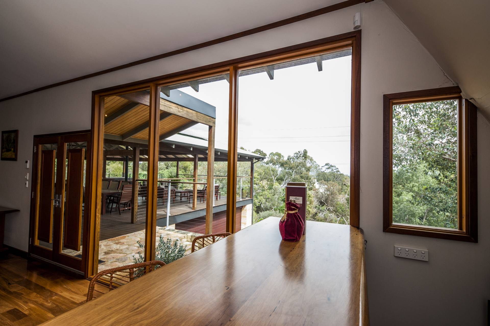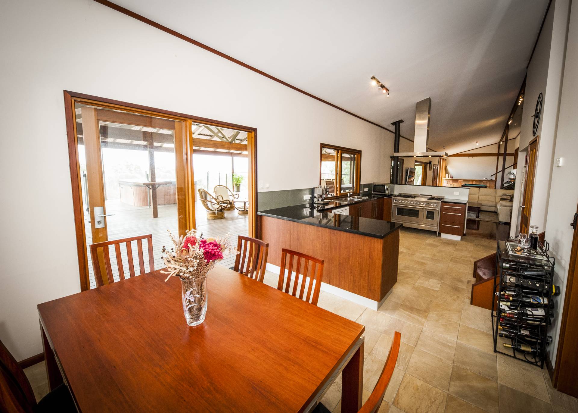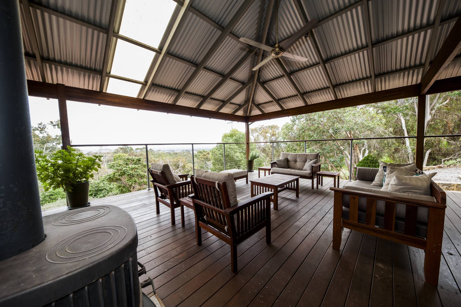 The property has a solid foundation and was designed to fit with the natural surrounds and use the landscape as part of the decor. No need to spend a lot on decoration, just enjoy the inside charm or get lost in the view through the windows or from the enormous front outdoor living space complete with Spa.