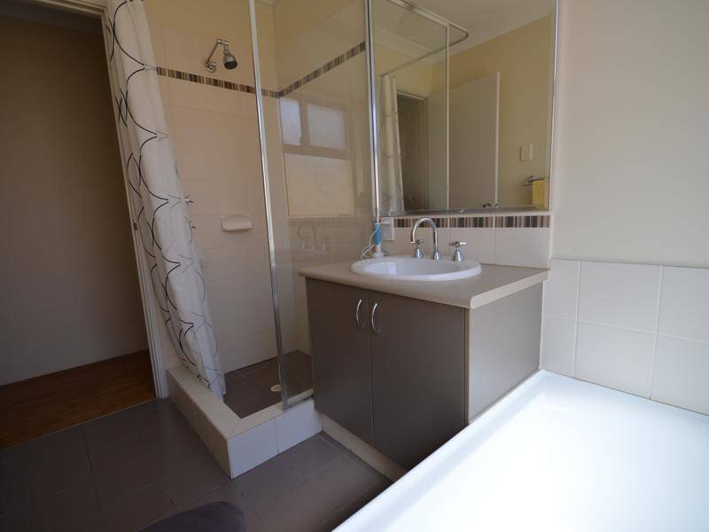 Light and bright main bathroom with separate shower and bath.