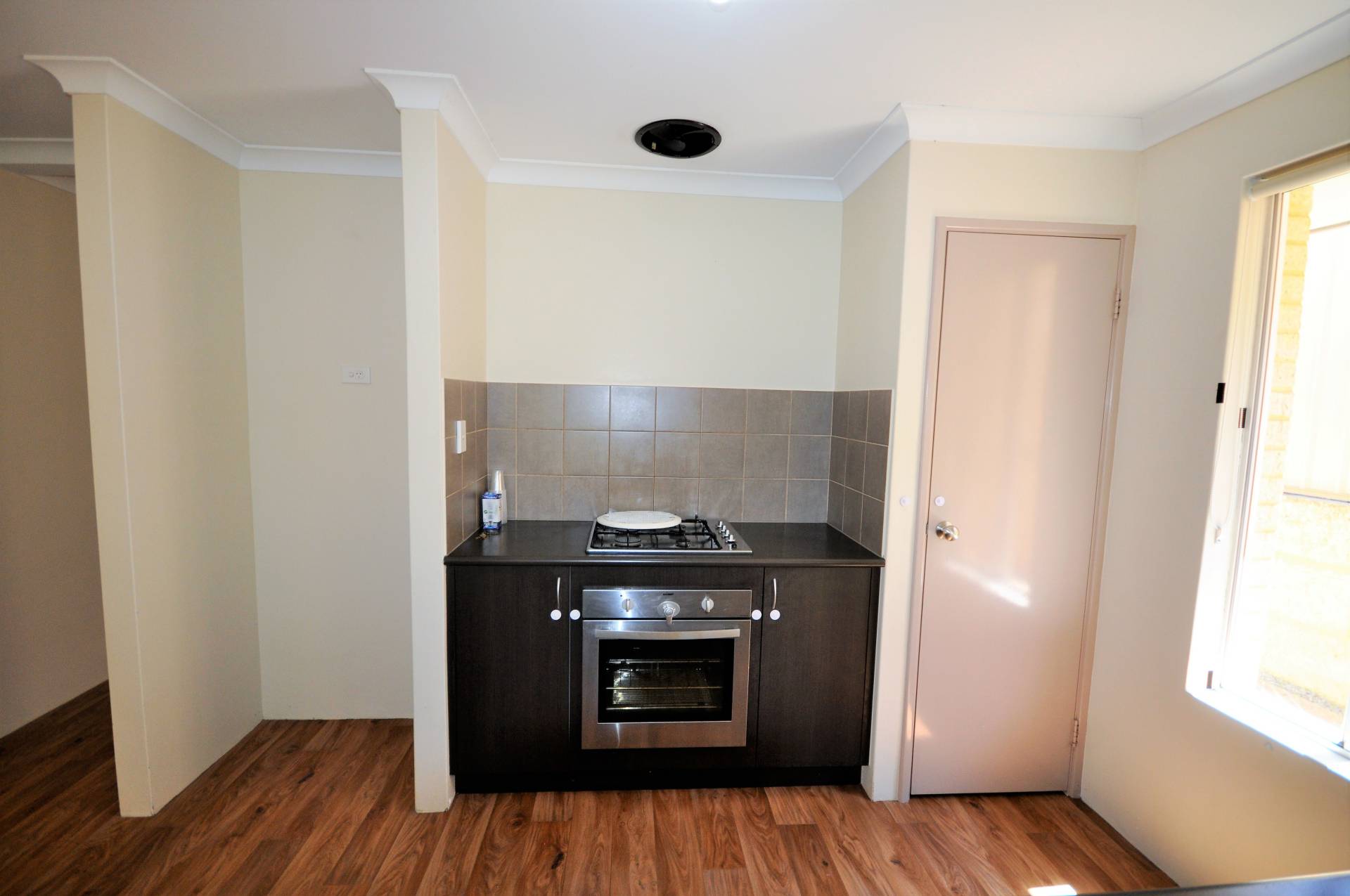 Large and modern kitchen with gas hotplates, plenty of cupboard space including pantry.