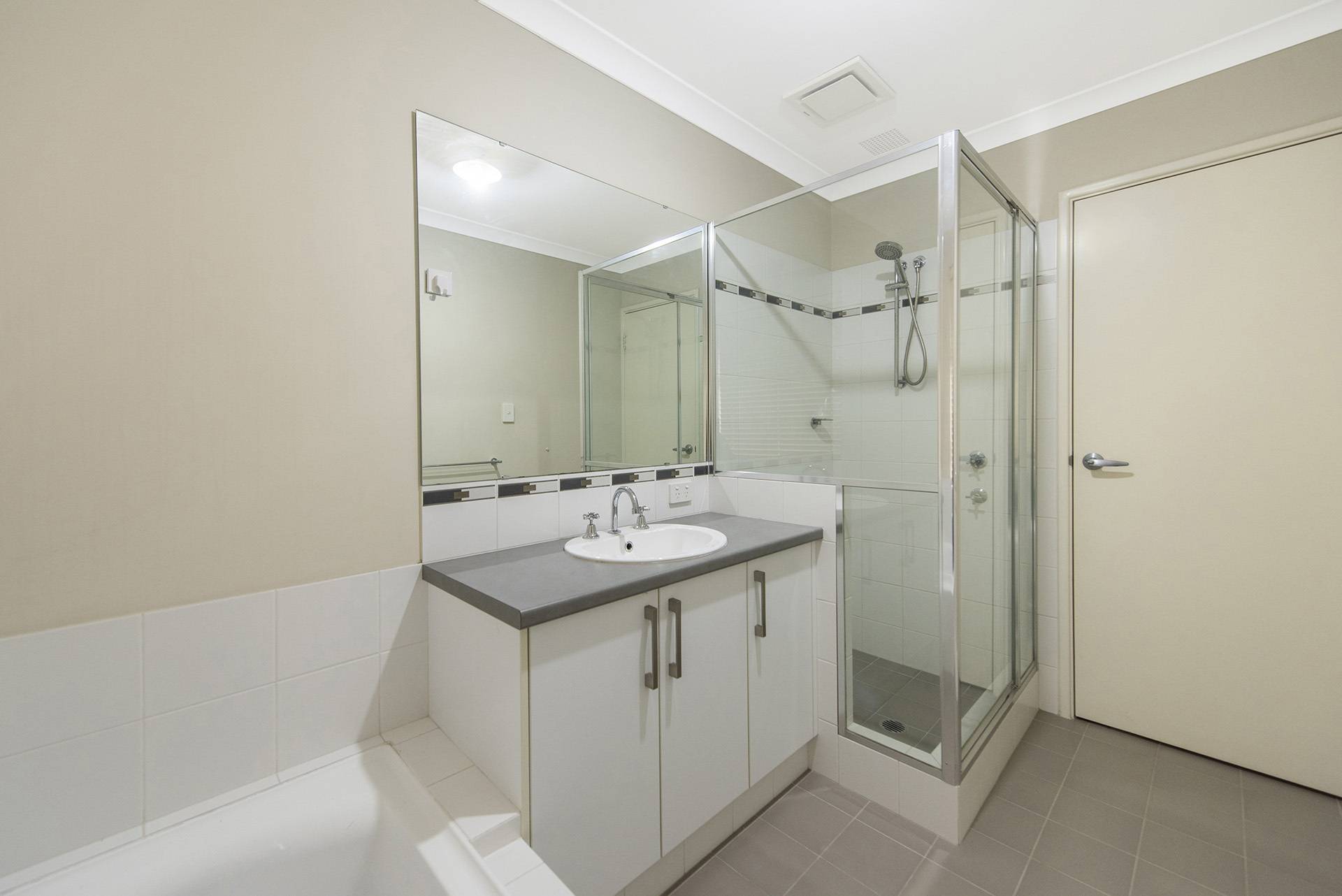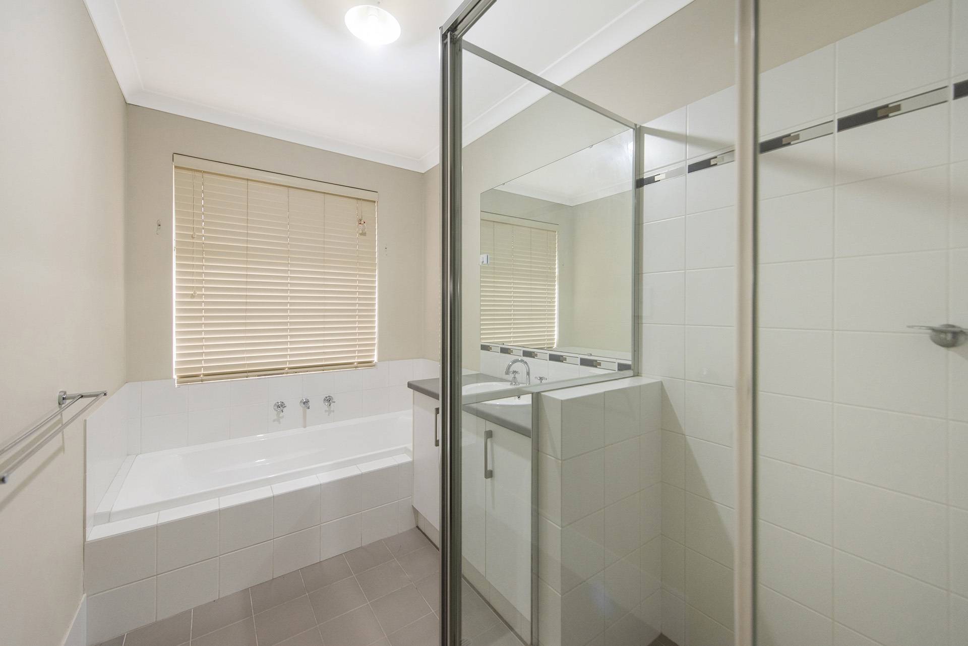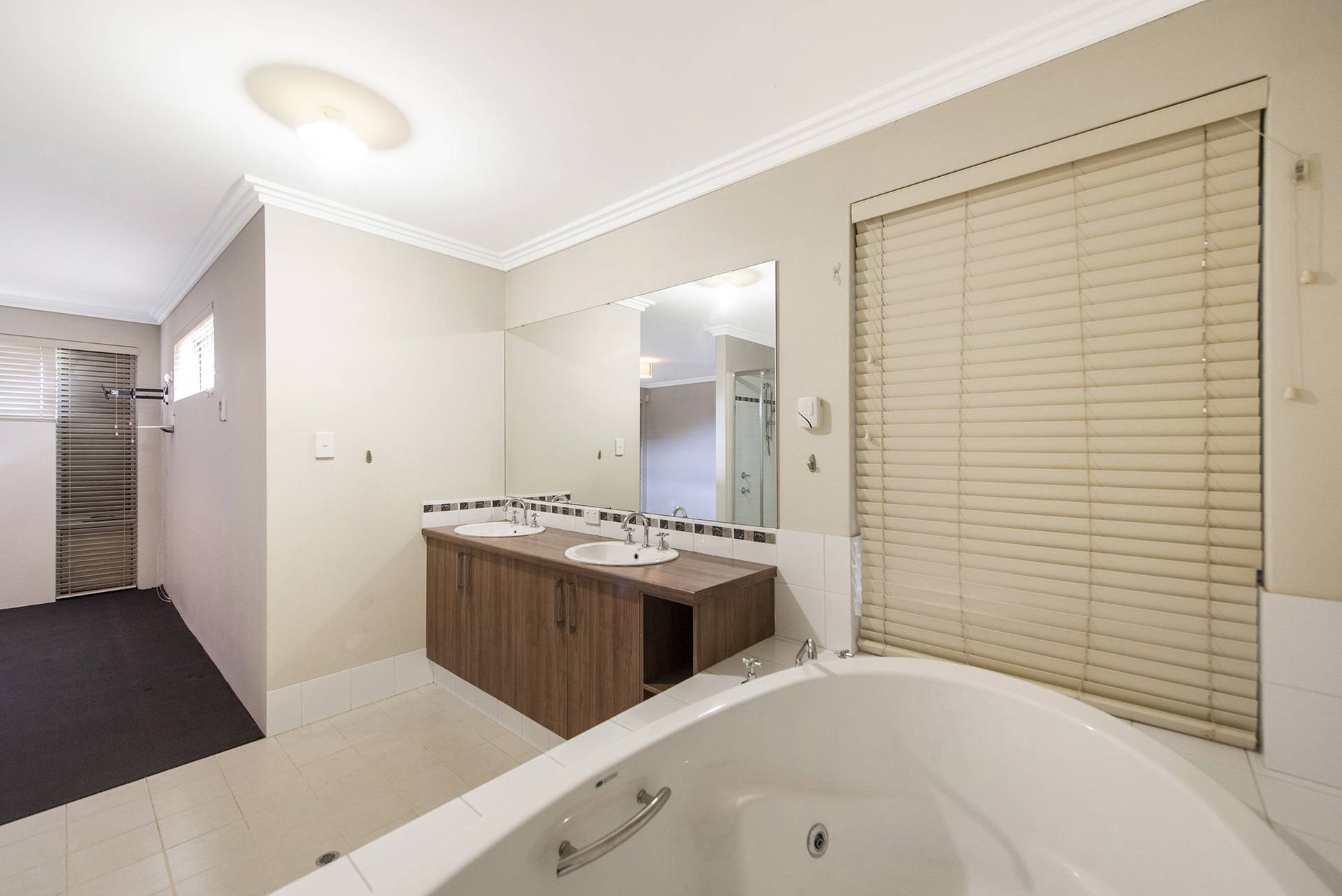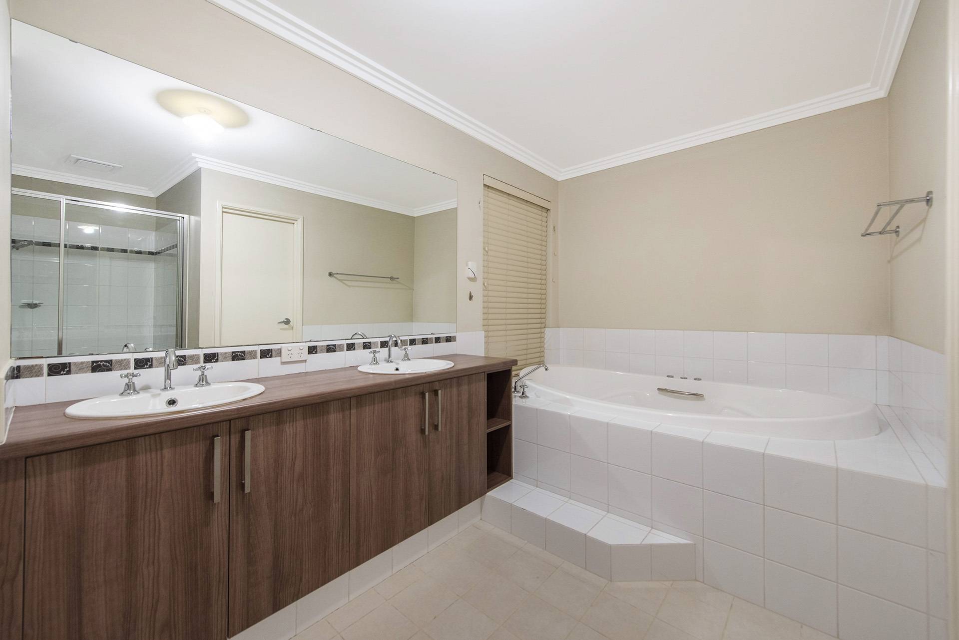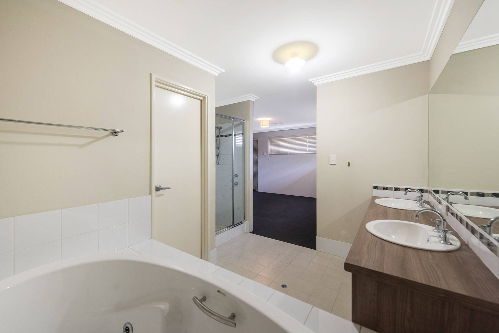 Stylish ensuite with spa bath, large vanity with twin vanities, separate shower and toilet.