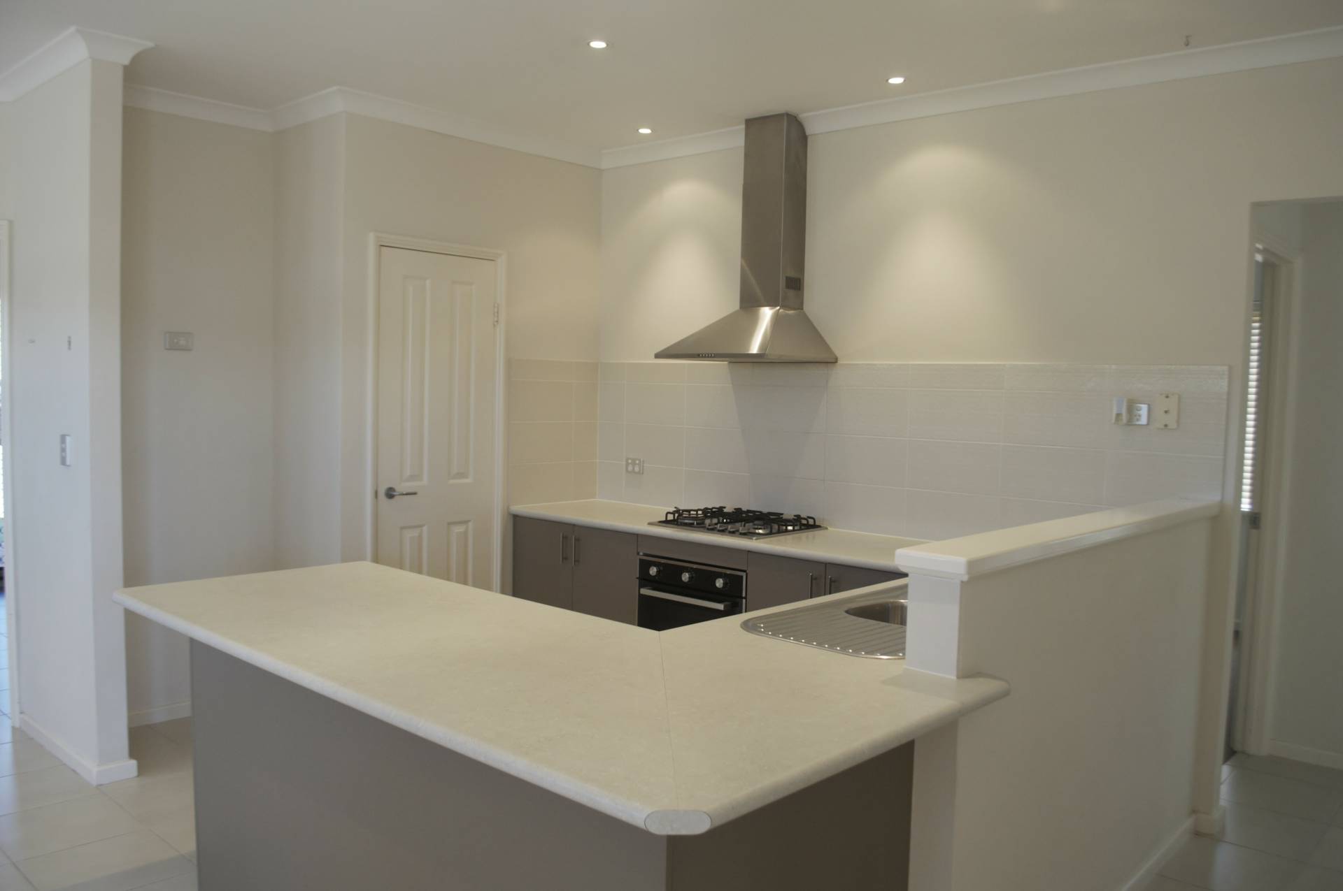 - U-shaped Kitchen that features a fridge recess, dishwasher recess, large pantry, tiled splashback, stainless steel appliances including gas cook top and rangehood