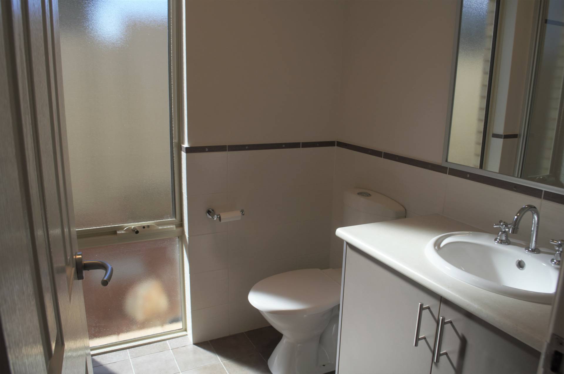 - Main bathroom with vanity with plenty of bench space, separate bath and shower