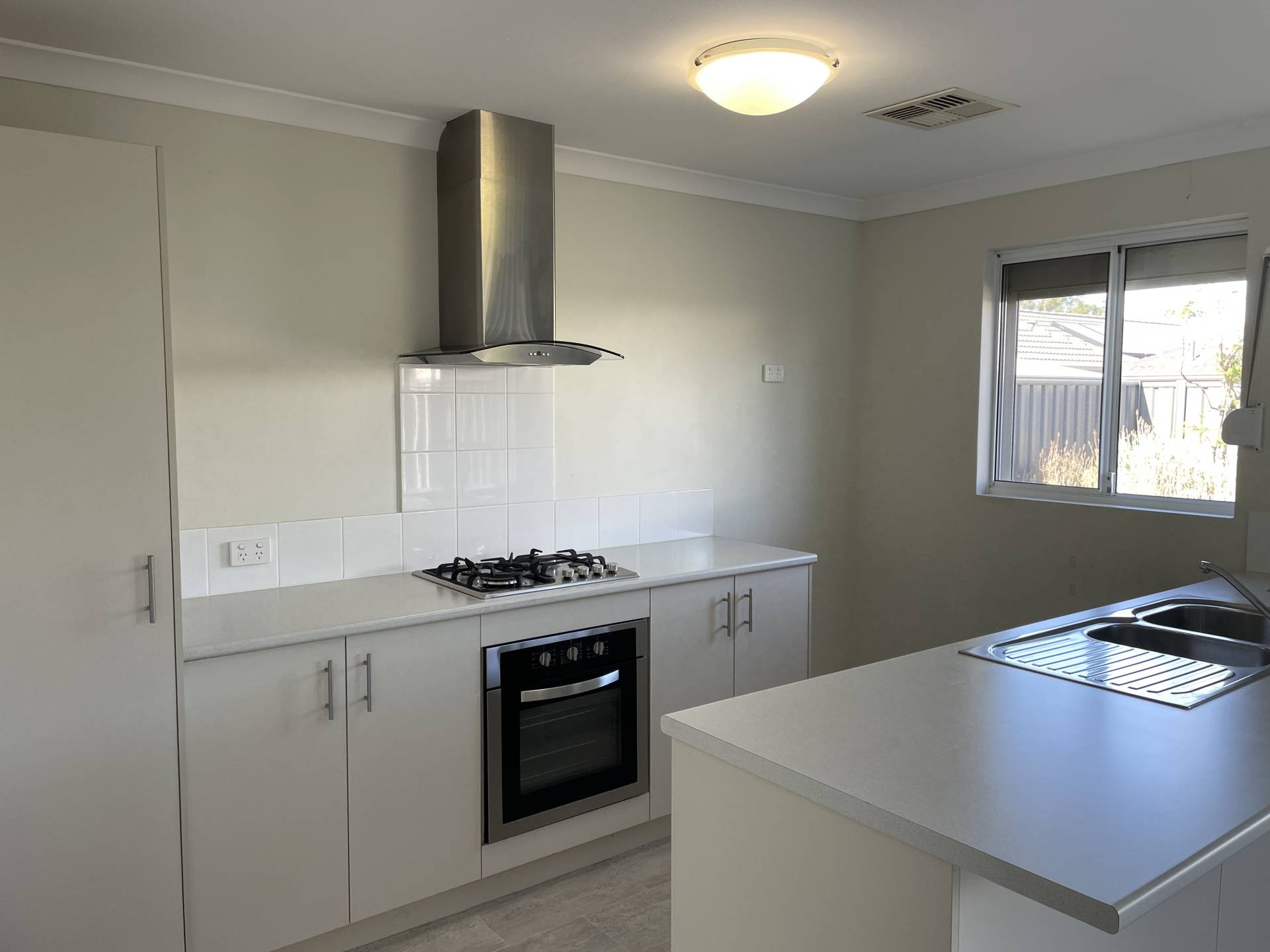 The modern kitchen is designed for both functionality and style, featuring plenty of cupboard space, pantry and gas hotplates.