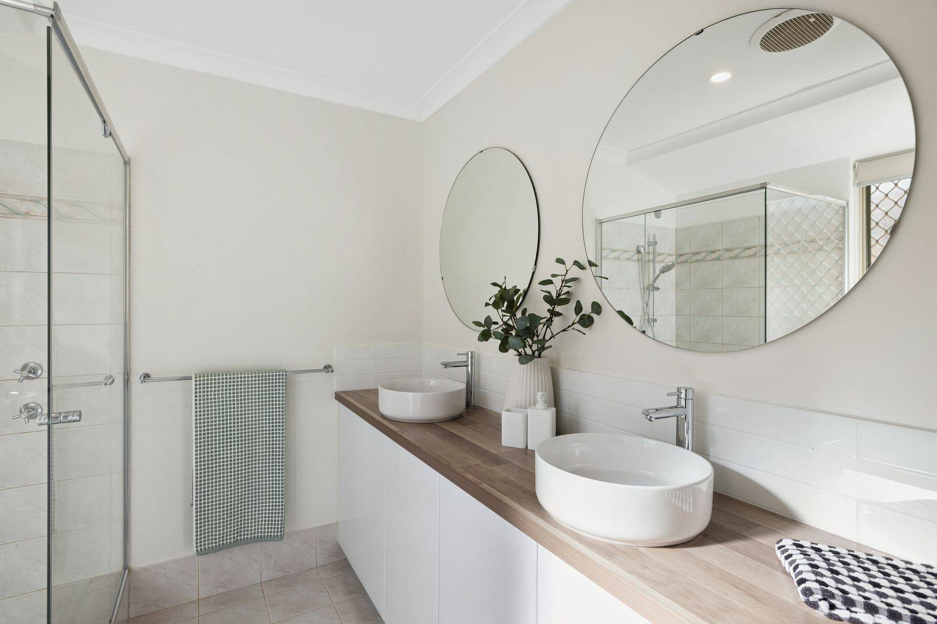 New cabinetry, vanity and basin add a contemporary feel to the main bathroom, complete with a separate bath and shower for everyday ease.