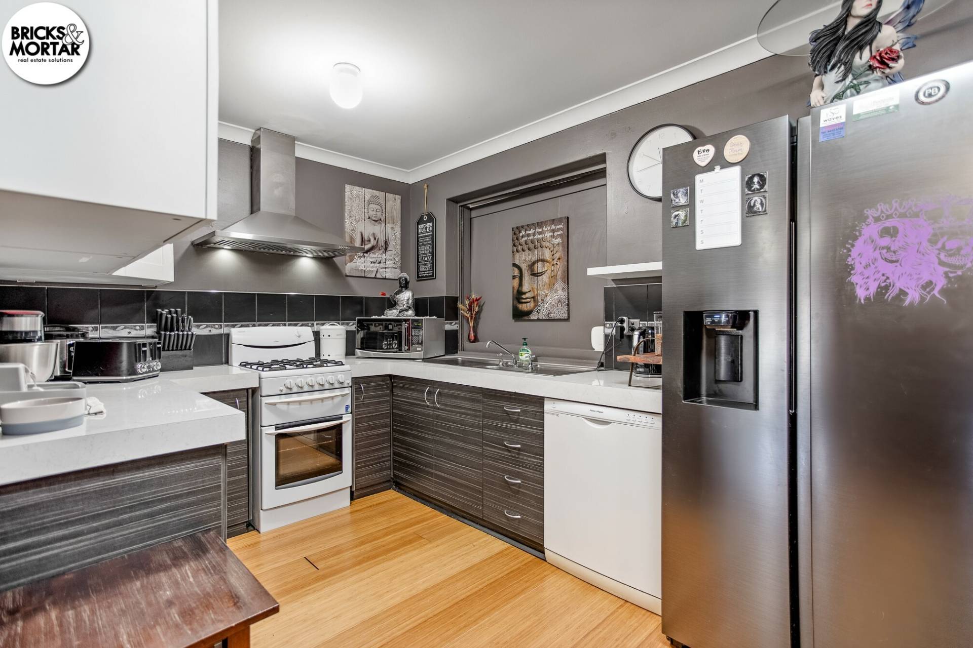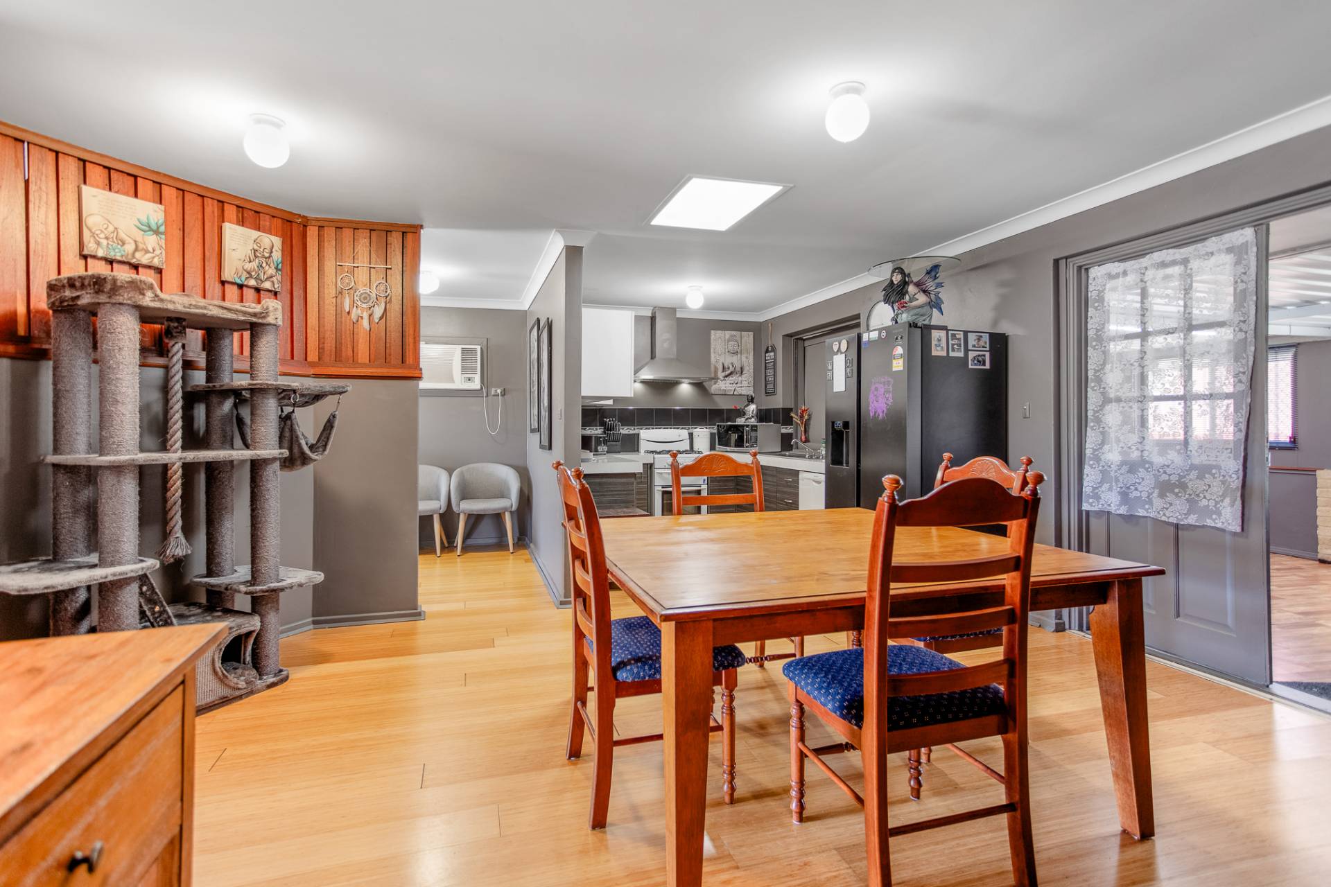 The open-plan kitchen and meals area is both functional and modern, with gas hotplates, stainless steel rangehood, ample storage and a generous benchtop . The dishwasher was replaced in October 2024 with a new unit, providing added convenience, though this upgrade is not visible in the advertising photos. A fixed window has also been installed between the kitchen and the enclosed rear patio to improve natural light and connection to the outdoors. Please note this addition is also not shown in the current photographs.
