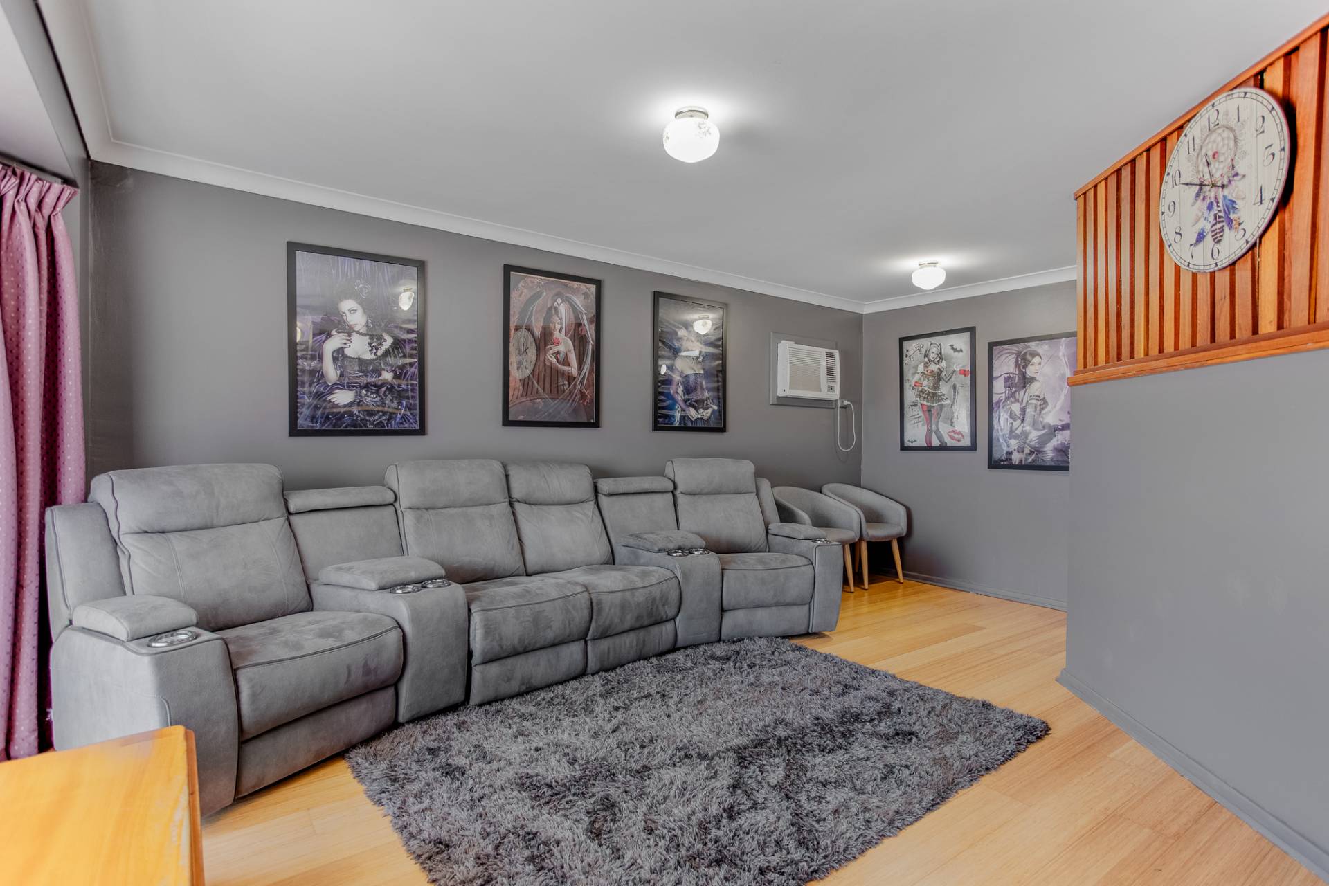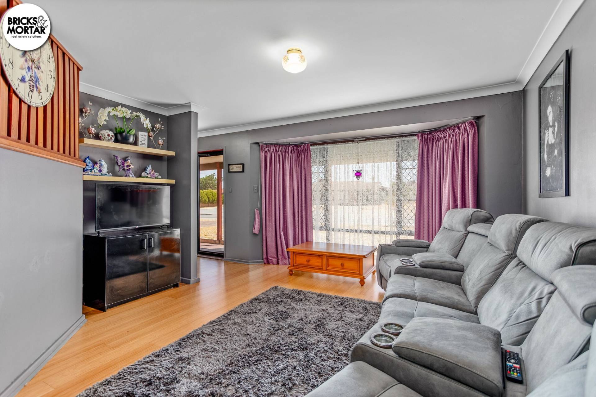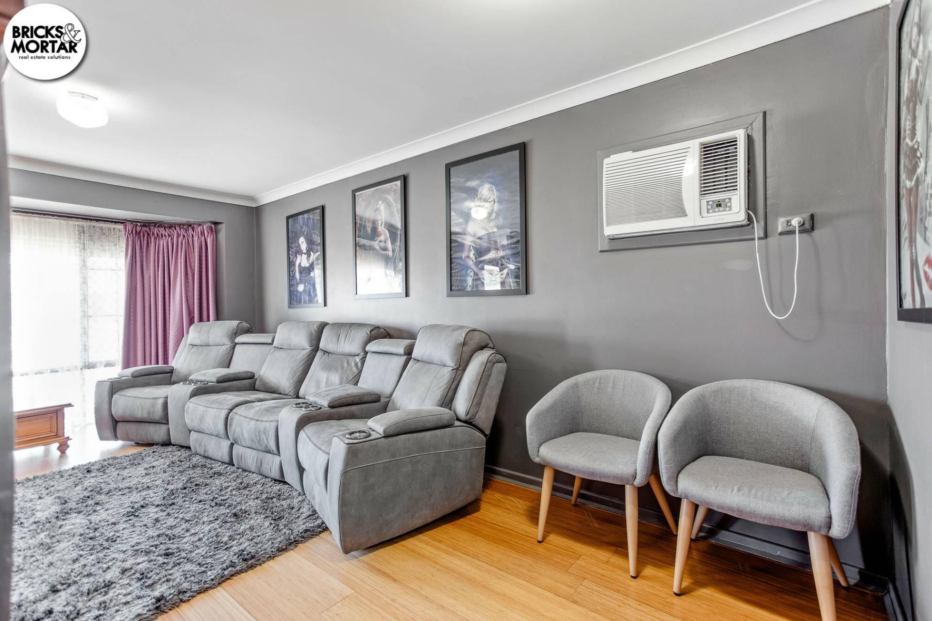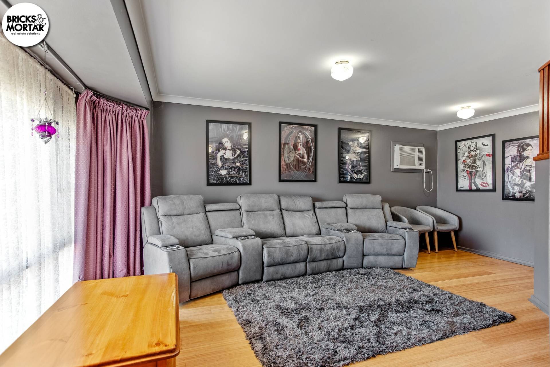 At the front of the home, the lounge offers a light-filled space ideal for family living or quiet evenings. The addition of a split system air conditioner adds additional comfort: this upgrade is not reflected in the current advertising photos.
