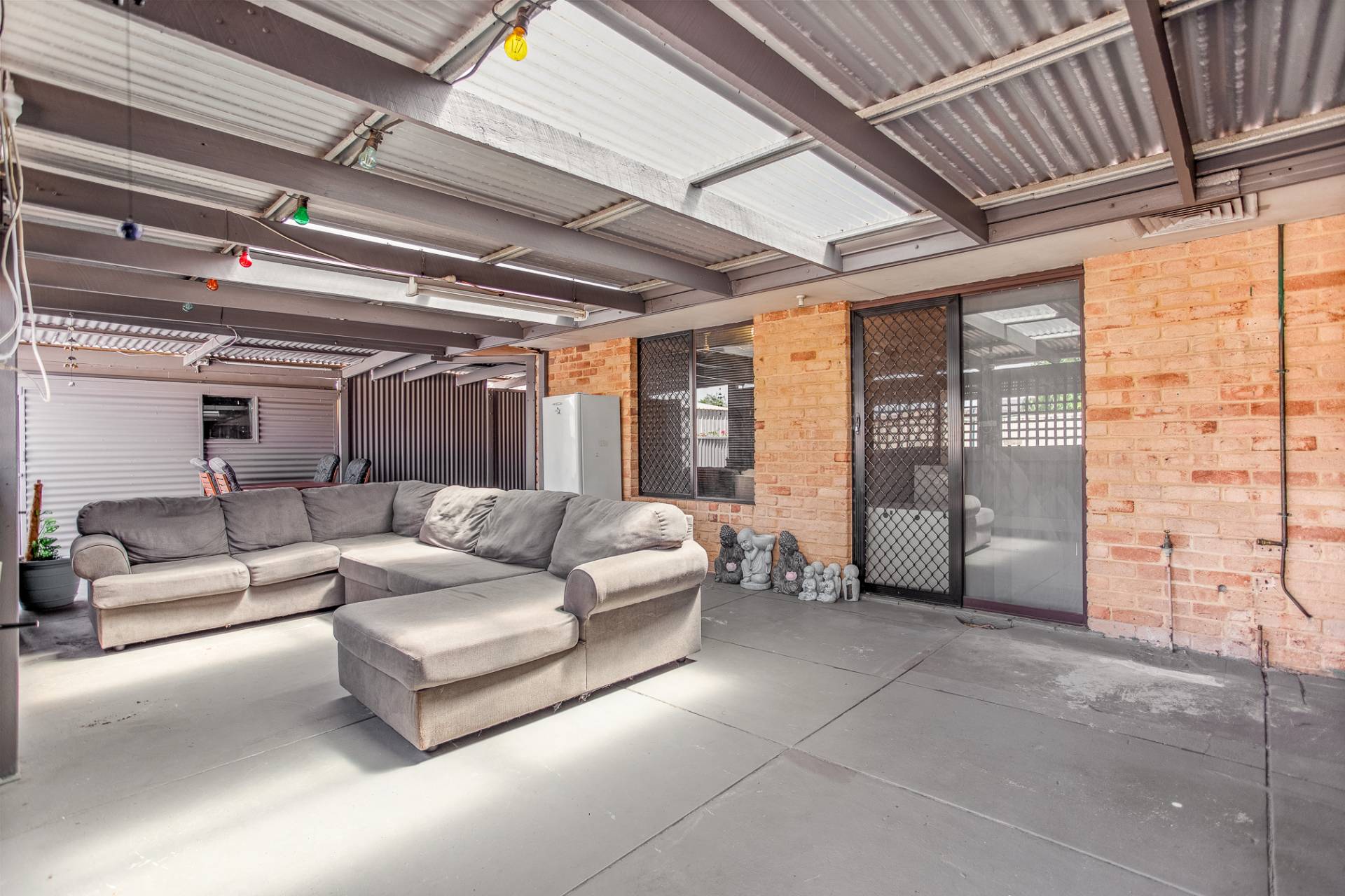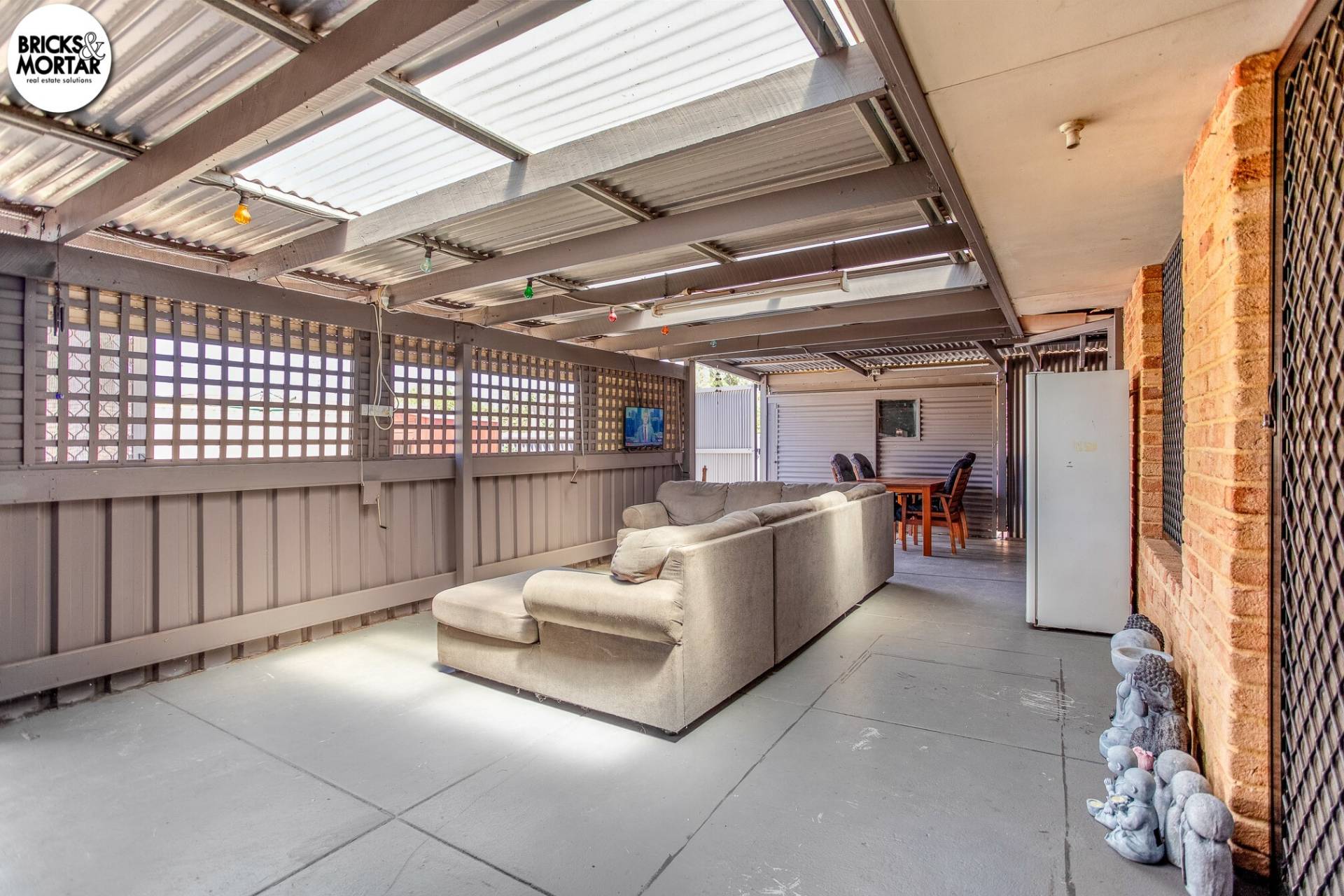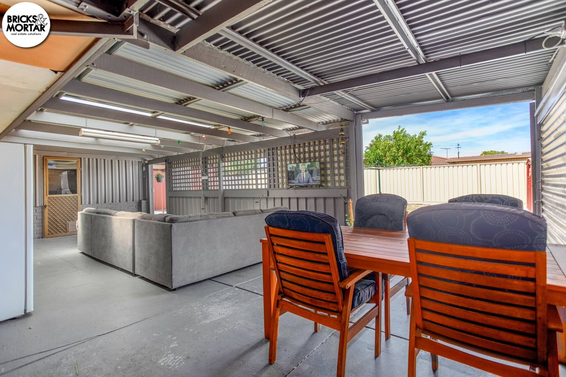 Outdoors, the property delivers plenty of usable space, a large enclosed patio runs along the rear of the home and is designed for all-season entertaining, it’s ideal for weekend barbecues, family gatherings or simply enjoying the outdoors in comfort. At the far end of the patio, an enclosed storeroom provides secure storage for tools, equipment or household extras, adding even more practicality to this versatile area.  Beyond this, the backyard opens up with a wide lawn area that provides ample space for children and pets to play. Two garden sheds offer additional storage, making the outdoor area easy to enjoy.