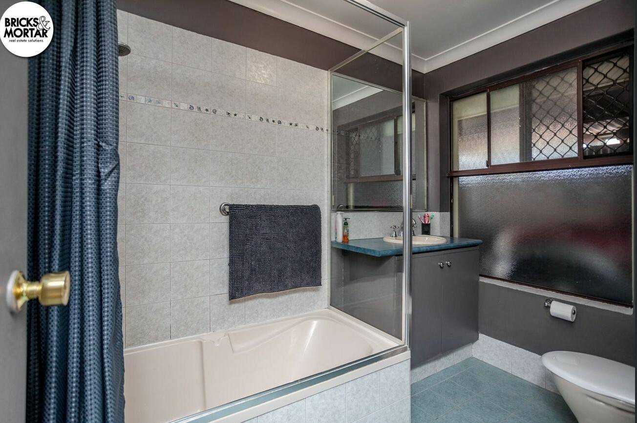 The main bathroom is central to the home and designed with everyday functionality in mind. It features a shower/bath combination, ideal for families with young children or those who like the option of both. A vanity with under bench storage provides room for daily essentials, while the toilet is separate for added convenience. A full shower screen has been installed to fully enclose the shower and bath area, offering a neater finish and easier maintenance: please note this update is not reflected in the current advertising photos.